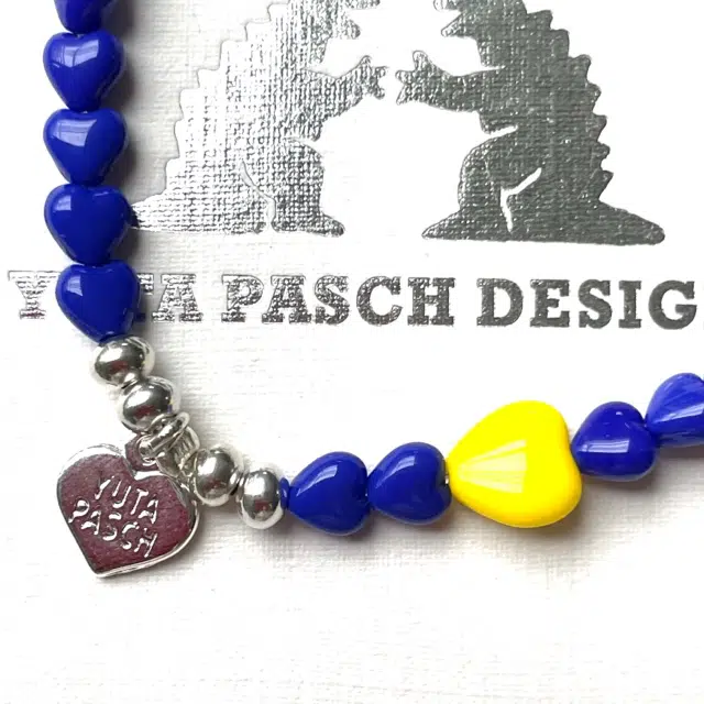 Ein Armband aus unserer Spendenaktion in den Farben der ukrainischen Flagge.