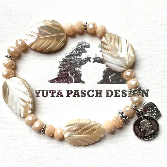 Ein wunderschönes Armband mit vier hochwertigen, massiven Perlmuttblättern und Glasschliffperlen.