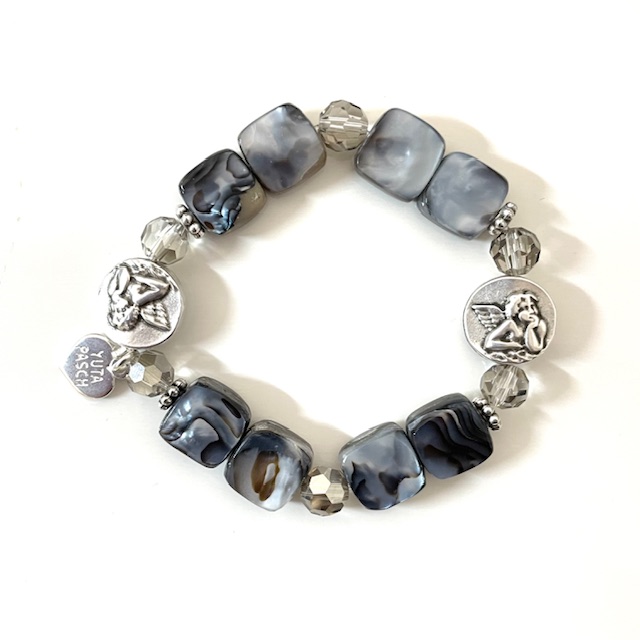 Schutzengel Armband mit besonders schönen Perlmuttperlen und Swarovskikristallen.