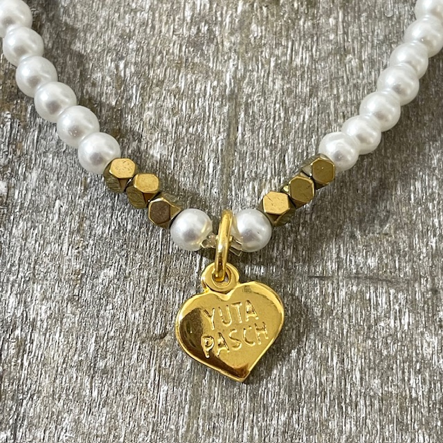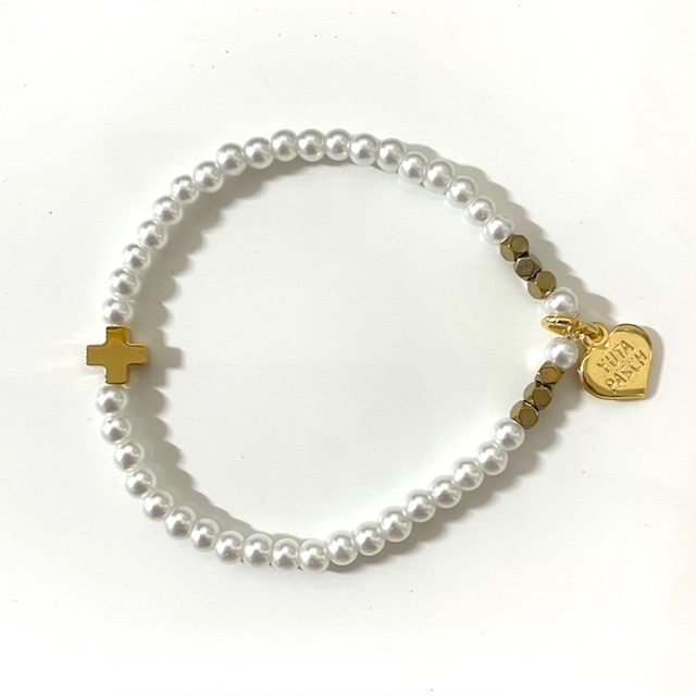 Schlicht, edel und mega schön ist dieses Armband mit einem Edelstahl Kreuzchen, Kulturwachsperlen und goldfarbenen Edelsteinen, Hematit. Unser Logoherz ist 24 K vergoldet.