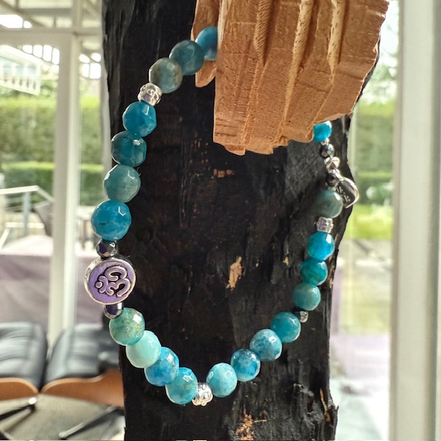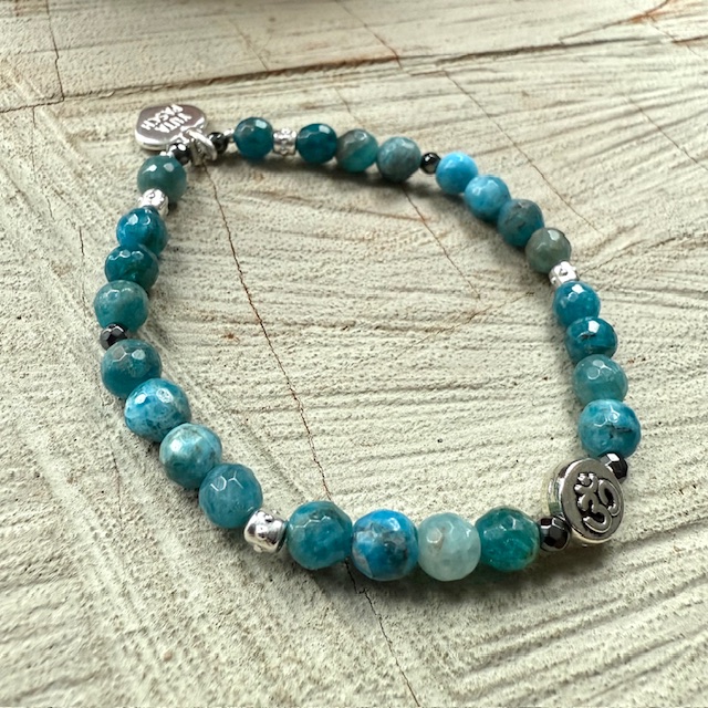 Edelstein Armband mit Hematit und Apatit. Insbesondere gilt in der Steinheilkunde der Apatit als Stein dessen Wirkung Beschwerden der Wirbelsäule & Gelenke lindern soll. Besonders bei Abnutzungserscheinungen, Arthrose & Osteoporose soll er eine positive Wirkung auf den Heilungsprozess haben.