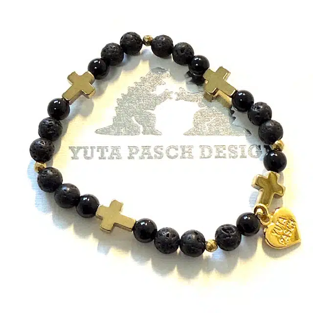Edelstein Armband mit Hematit, schwarzem Onyx und Lavasteinen.