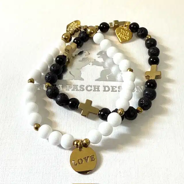 Diese schwarze Armband ist schön zu kombinieren mit unserem weißen Achatarmband A 506.