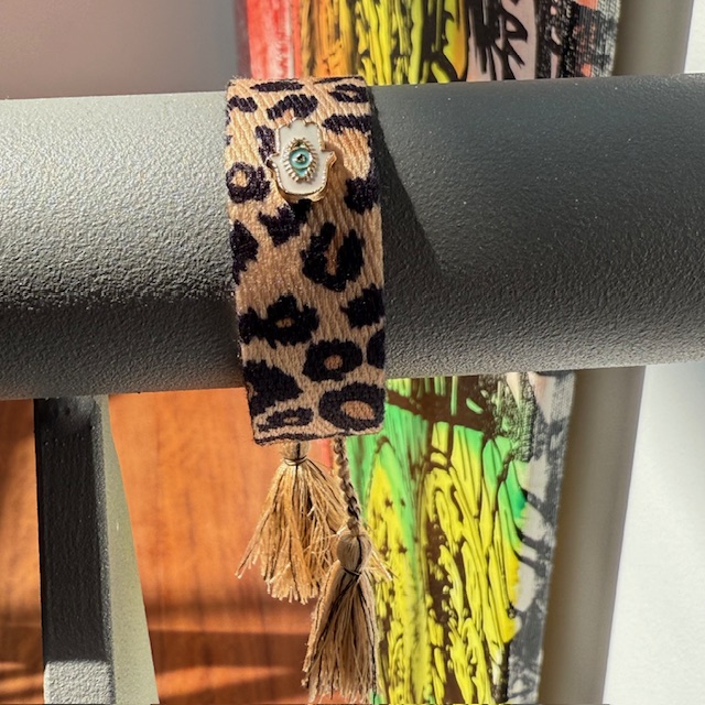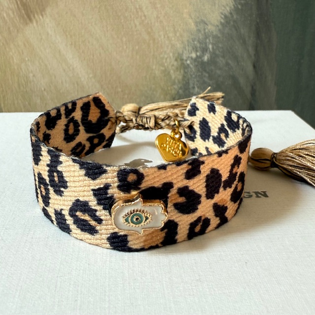 Für alle Leo- Fans ist dieses Stoffarmband mit einer kleinen, schützenden Emaillehand und Quasten ein Must Have für den Sommer oder Winter. Leo geht immer 😀!