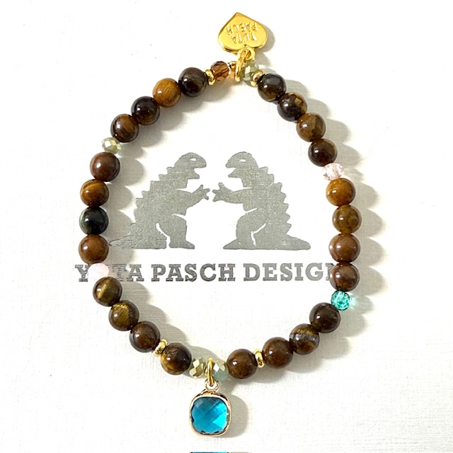 Edles Armband mit Edelsteinen, Tigerauge und Kristallgläsern.
