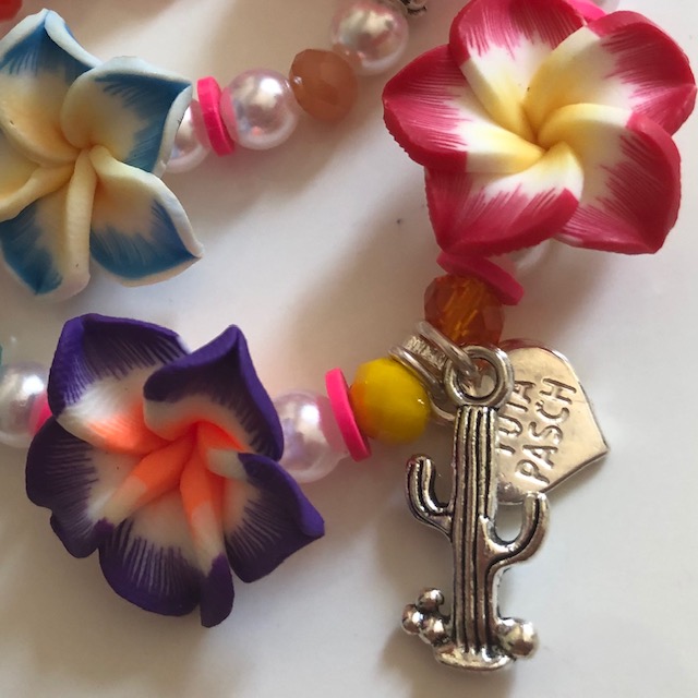 Bohemian Style Armband mit 5 Blüten und einem kleinen Kaktus