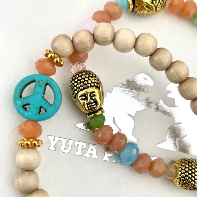 Zwei wunderschöne Armbänder in Naturtönen bestehend aus Holzkugel, Halbedelstein Peace, Glasschliffperlen , vergoldeten Elementen und Namensherzchen .