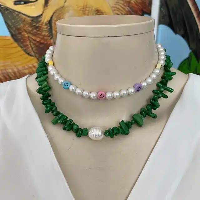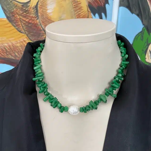 Mega schöne Halbedelsteinkette bestehend aus Bambuskoralle und einer dicken Muschelkernperle