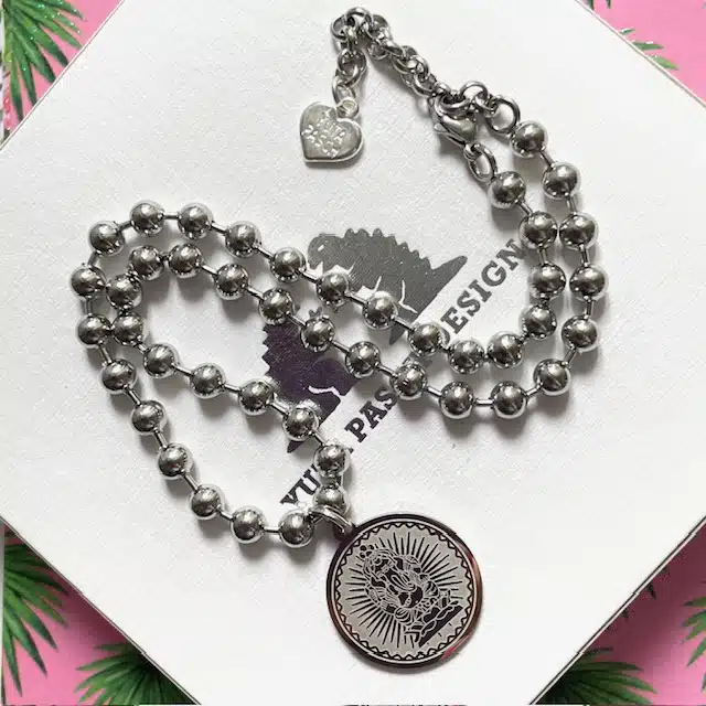 Materialien: Edelstahl Anhänger und Kugelkette 6 mm, Logoherz 999 versilbert