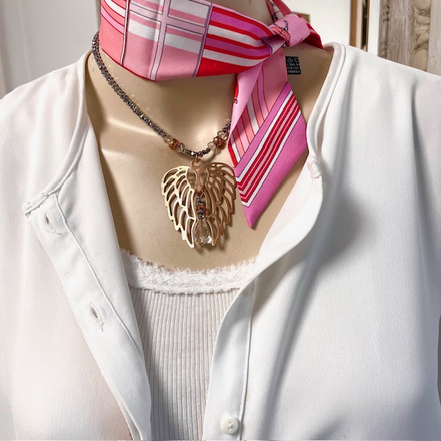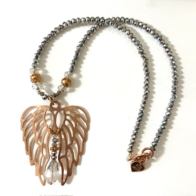 Statement Kette mit Flügel und wunderschönen, versilberten Glasperlen