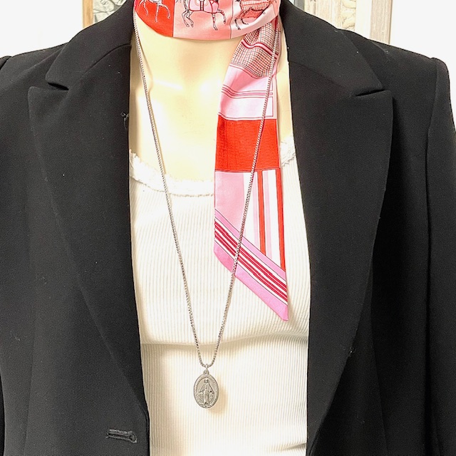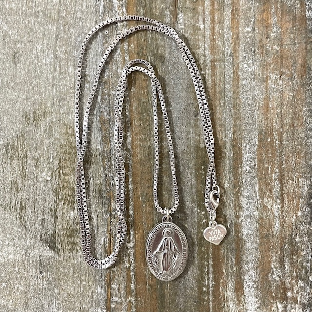 Materialien: Edelstahl Madonna, Kette in Deutschland handgefertigt und versilbert/ rhodiniert, Logoherz 999 versilbert