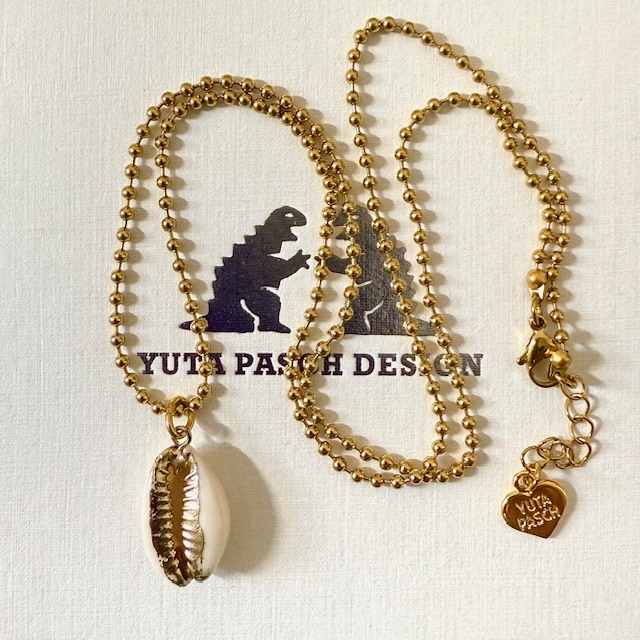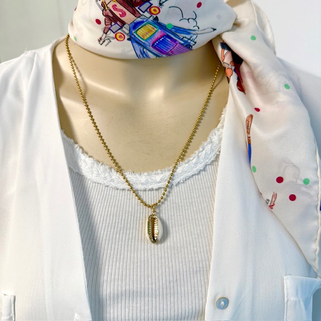 Pur & elegant! Mittellange 18 K vergoldete Kette mit Muschelanhänger. Unser Logoherz ist 24 K vergoldet.