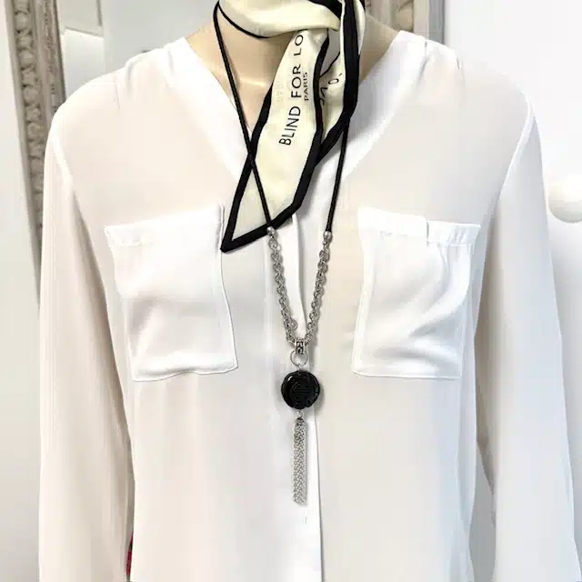 Materialien: Echt Silber verzierter Ring, Sterling Silber Quaste, Edelstahlkette, Stoffband, 3 cm großer Edelstein Obsidian, 999 versilbertes Logoherz