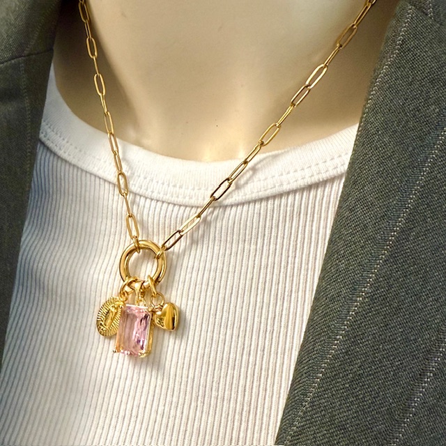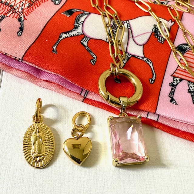 Kurze 18 K vergoldete Kette mit 3 Anhängern zum Wechseln.