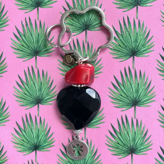 S 3, großes Glasherz mit Bambuskoralle ( jede sieht natürlich anders aus ) und Schutzengel ,